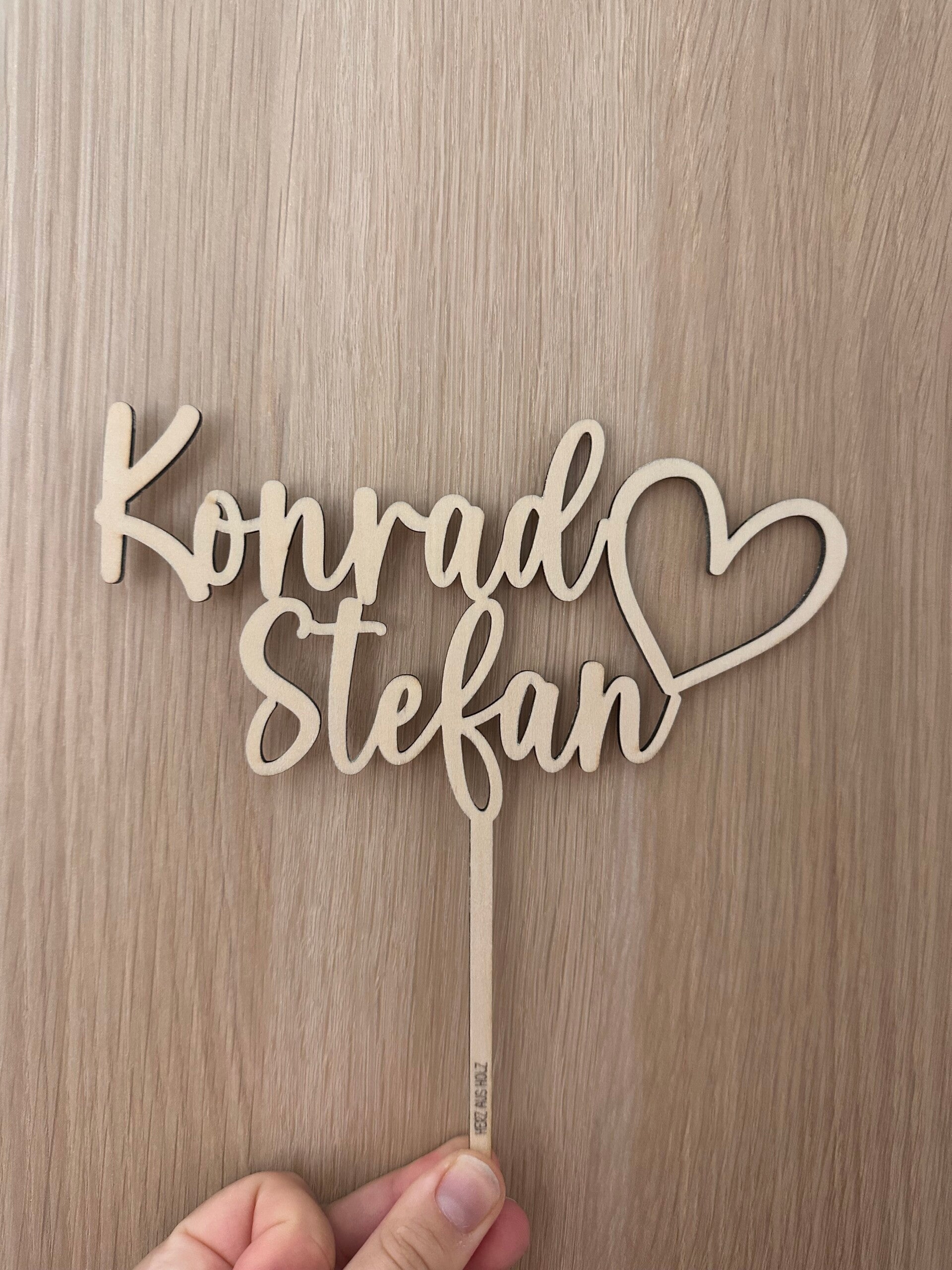 Der Caketopper wird aus 3mm starken Lindensperrholz gefertigt & passt zu jeder Festtafel und bleibt als Erinnerung an diesen besonderen Tag unvergesslich.