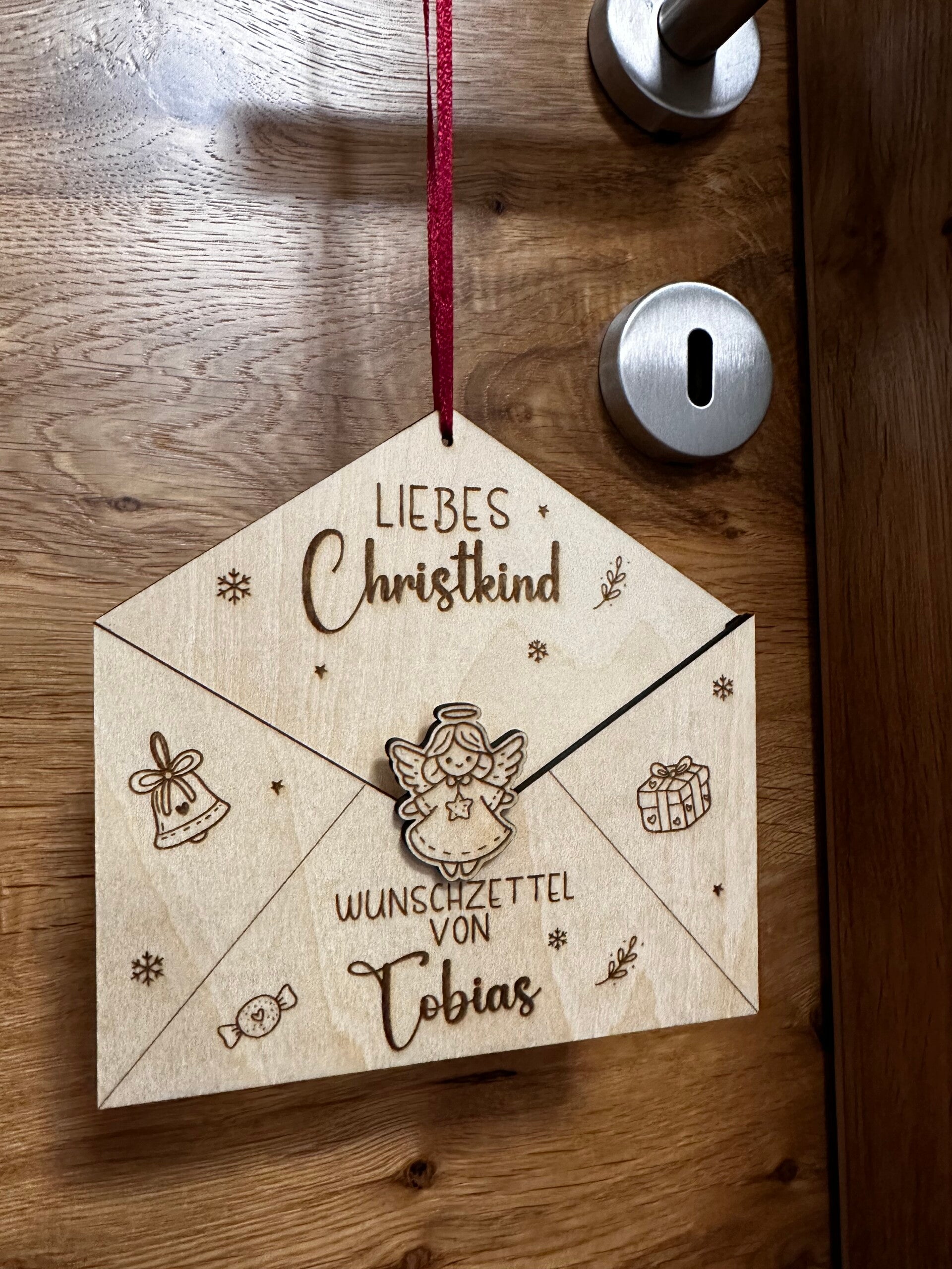 Wunschzettel ans Christkind schreiben, an der Zimmertür aufhängen und Wünsche erfüllen lassen.
