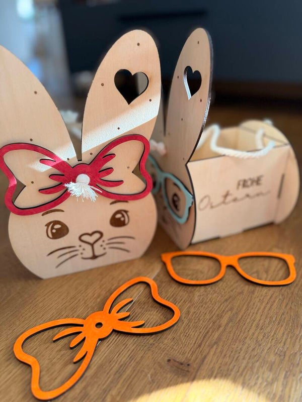 Osterkörbchen aus 3mm Lindensperrholz in süssem Design.