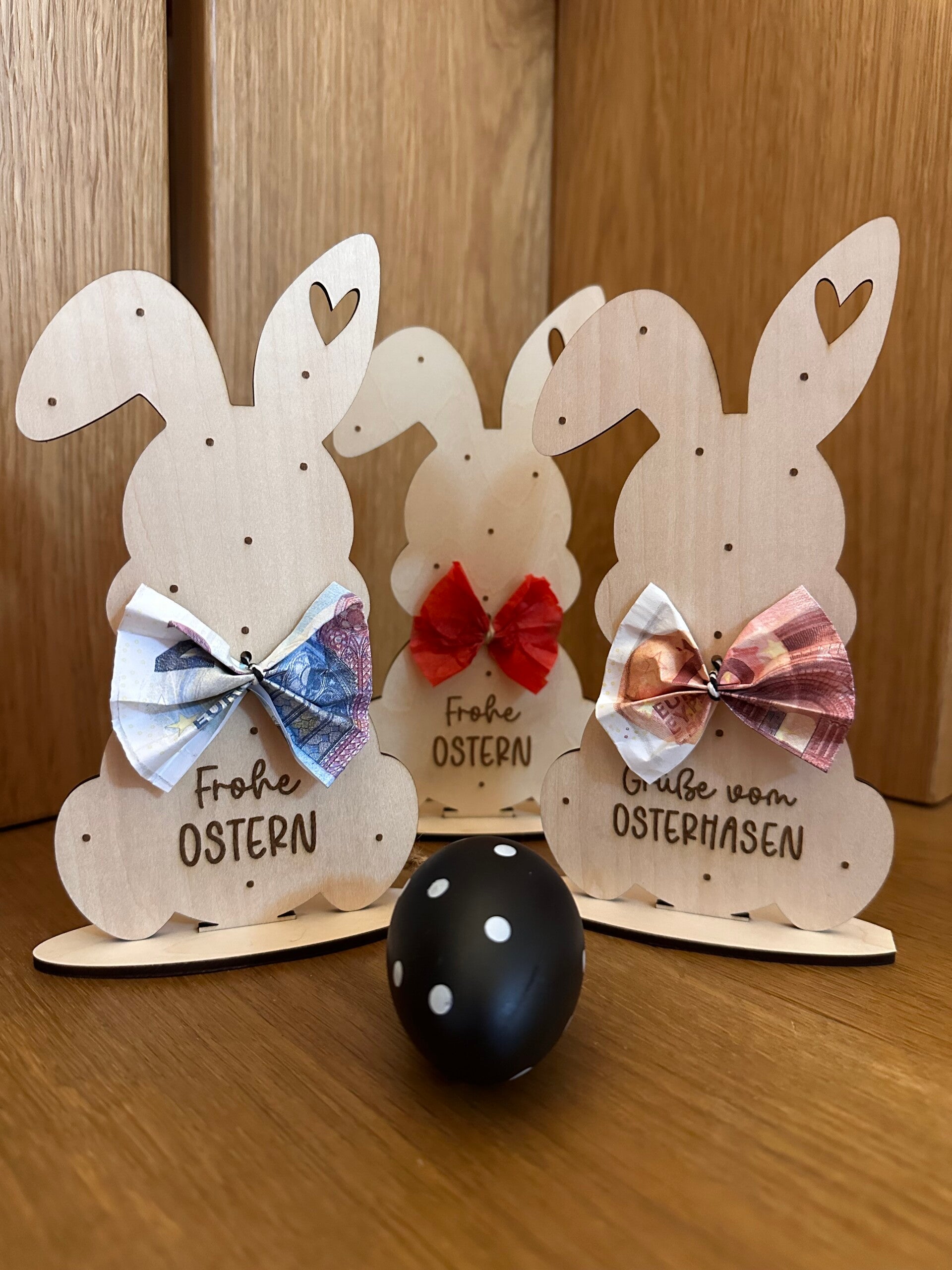 Aufsteller Osterhase kann als Geldgeschenk und als Deko genutzt werden - statt Geld einfach Stoff, Seidenpapier etc als Mascherl einsetzen ;)